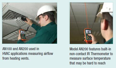 美國EXTECH AN200葉輪風(fēng)速儀+紅外測溫儀工作圖示: