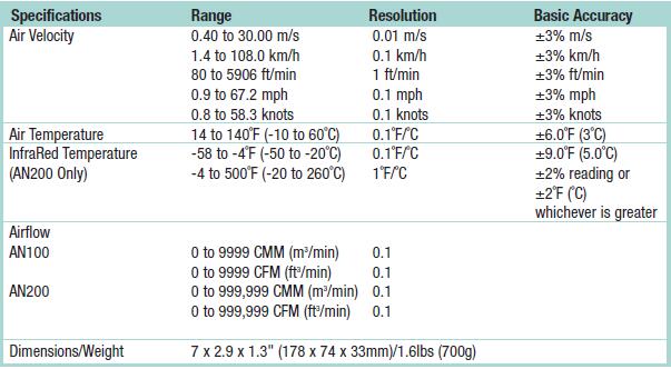 美國EXTECH AN200葉輪風(fēng)速儀的技術(shù)參數(shù):