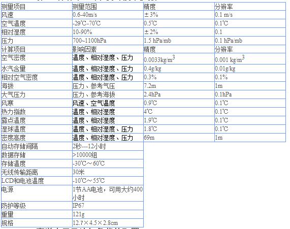 • 測量:蒸發(fā)速率、空氣流量、空氣體積、空氣密度、相對空氣密度、Delta-T等 • 大屏幕,高分辨率,高對比度,數(shù)據(jù)圖表顯示,在明亮的陽光下具有較好的可讀性,具有背光,可以夜晚使用。 • 手持便攜式氣象站,具有數(shù)據(jù)存儲功能,數(shù)據(jù)制表功能。 • 可選由Bluetooth Smart® 提供的LiNK,可以通過無線與手機(jī)或電腦進(jìn)行連接 • 堅固耐用(跌落測試符合MIL-STD-810G標(biāo)準(zhǔn)),完全防水(防護(hù)等級IP67),能夠漂浮在水上。 • 配件包含:保護(hù)袋,頸繩,AA鋰電池 2年保修。