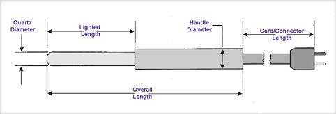 90-0012-01(11SC-1):很受歡迎的一款筆式汞燈。其簡(jiǎn)單的物理尺寸適合于多種應(yīng)用。 燈的點(diǎn)亮長(zhǎng)度為2.12"(53.8毫米),總長(zhǎng)度為4.62"(117.3毫米)。 燈發(fā)出的光譜能量主要集中在254nm。該標(biāo)定電壓800V(起點(diǎn))和270V(運(yùn)行)。 推薦電源99-0055-01(或99-0055-02)。 90-0019-01(11SC-1L):是11SC-1的長(zhǎng)波版本。所有屬性是相同的,除了石英管套有一個(gè)藍(lán)色濾色器,以吸收可見光,增大點(diǎn)燃長(zhǎng)度到2.25"(57.2毫米)和擴(kuò)大外徑0.375"(9.5毫米)。主要排放是365nm(長(zhǎng)波)由254nm的轉(zhuǎn)換功率。 推薦電源99-0055-01(或99-0055-02)。 90-0020-01(11SC-2):較短的點(diǎn)亮長(zhǎng)度(0.75",19.1毫米)為11SC-1受限制版本,其他所有屬性都是相同的, 標(biāo)定電壓800V是(啟動(dòng))和270V(運(yùn)行),推薦電源99-0055-01(或99-0055-02) 90-0004-01(3SC-9):很受歡迎的大型筆式燈,點(diǎn)亮長(zhǎng)度為9.0"(228.6毫米),外徑為0.375"(9.5mm)。 燈常用于光反應(yīng)和臭氧產(chǎn)量。光譜能量主要集中在254nm。 標(biāo)定電壓為640V(起點(diǎn))和560V(運(yùn)行)。推薦電源:115V 99-0055-01或99-0004.02 220V。