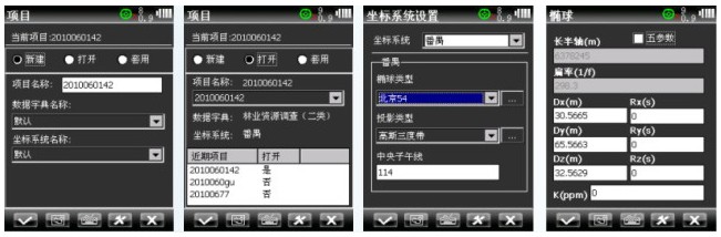 簡便的項目配置 Ⅰ項目式數據采集管理方式,可按日期或自定義新建、打開、套用項目; 數據字典可自動選擇或現場新建; Ⅱ坐標系統可設置專業的七參數或通用的五參數,坐標數據可選擇經緯度或平面坐標格式。