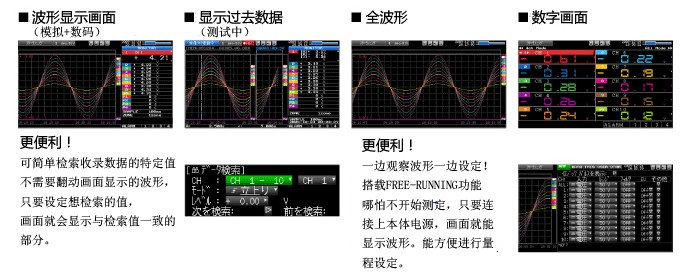 搭載環(huán)形存儲(chǔ)器功能 內(nèi)置存儲(chǔ)器與USB存儲(chǔ)器采用環(huán)形存儲(chǔ)器功能,存儲(chǔ)器中僅保存必要的最新數(shù)據(jù)。 (ON時(shí),可収錄存儲(chǔ)器容量為空余容量的1/3以下。) 支持3WAY電源 支持AC、DC、蓄電池等3種電源。蓄電池組可供約6小時(shí) 驅(qū)動(dòng)。使用AC電源驅(qū)動(dòng)時(shí)一旦停電,可自動(dòng)切換為蓄電池驅(qū)動(dòng)。且當(dāng)蓄電池容量變少時(shí),可自動(dòng)停止測(cè)定,執(zhí)行文件關(guān)閉操作,從而保護(hù)重要數(shù)據(jù)。 (*6) 蓄電池組與DC驅(qū)動(dòng)纜線均為選購(gòu)產(chǎn)品。 此外,蓄電池組的驅(qū)動(dòng)時(shí)間因設(shè)定條件與使用狀況而有所差異。