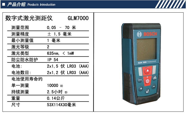 博世GLM7000手持式激光測距儀的測量距離為70米,測量精度為1.5mm。上海熙浩特價銷售